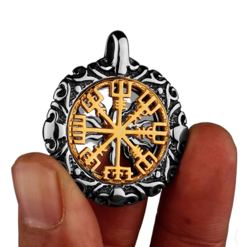 - Featuring a chain and a double-sided pendant, this talisman features the Vegvisir symbol , guarantor of guidance, and the sun , representing solar power. The hollow and openwork Celtic amulet in stainless steel , resistant and hypoallergenic , sports quality details. Designed for men who embrace the strength of the ancient, the Viking Talisman necklace is an accessory that fuses symbolism and elegance .
