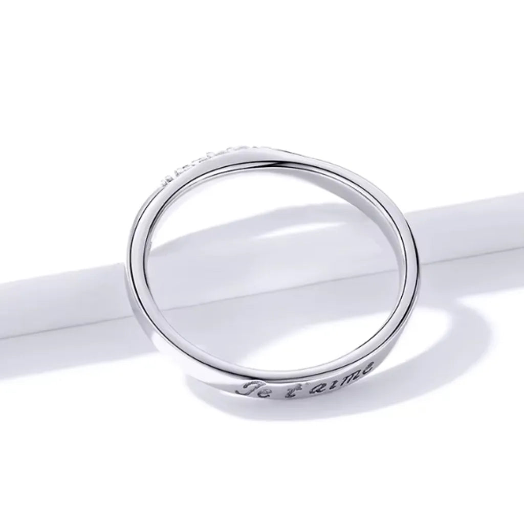 Minimalist and luminous, this 925 silver ring lights up with white zircons and a sweet engraved message - I love you . A discreet and powerful symbol of everyday love.