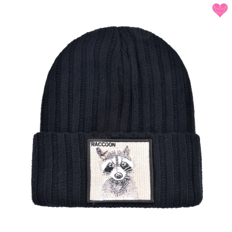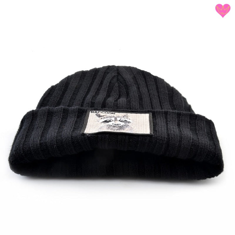 Knitted Wool and Cotton Raccoon Hat with Fold-Over Brim - Warm and Soft