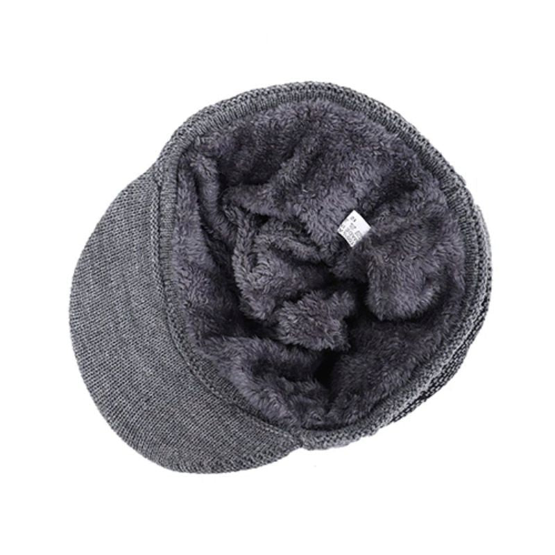 Men's knitted wool blend peaked cap hat with warm plush lining