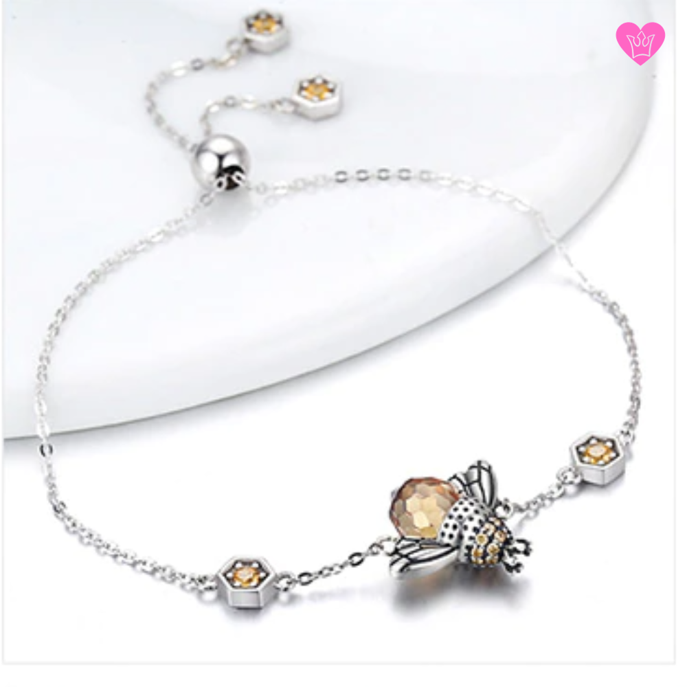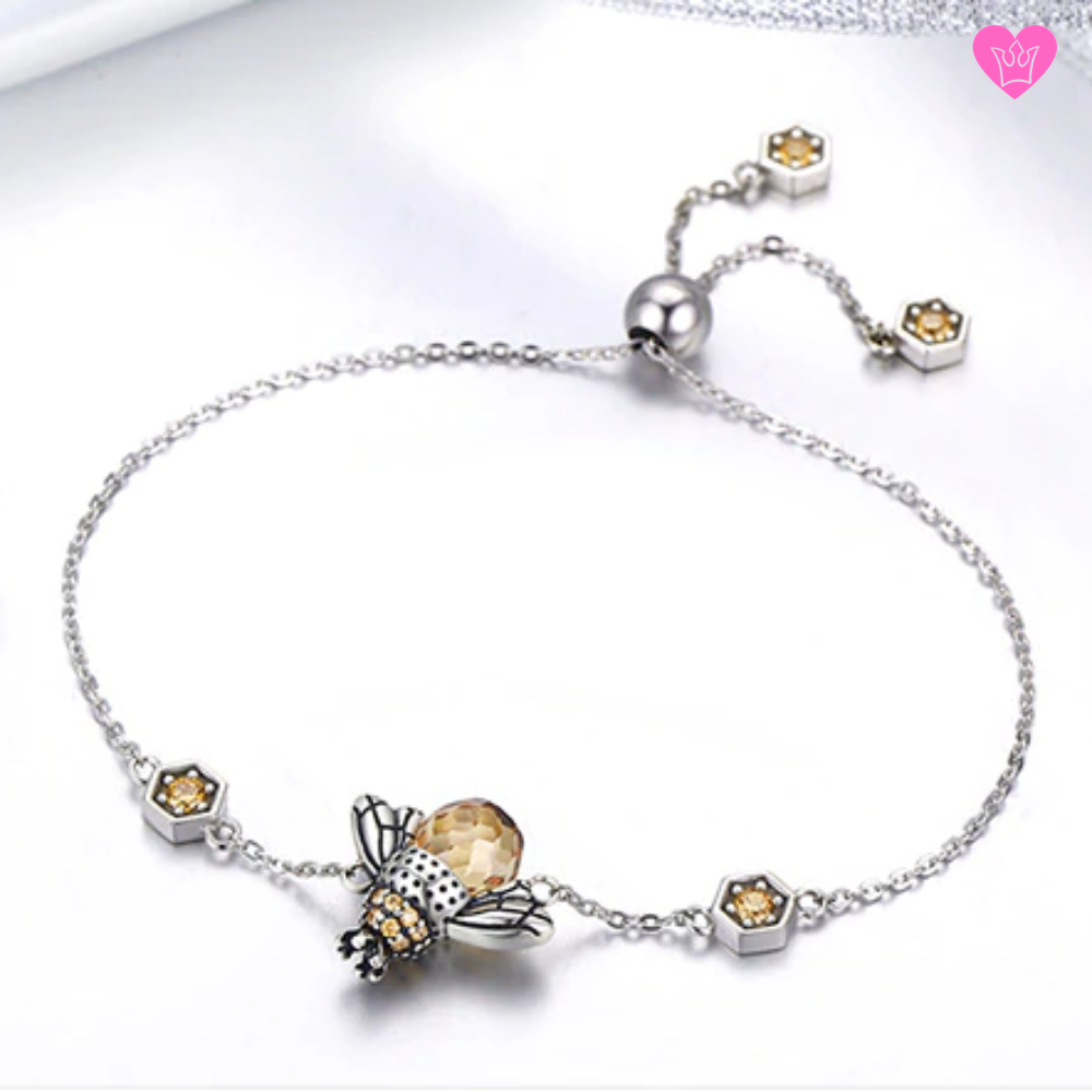 Queen Bee Bracelet 925 Silver – Honey Crystal and Zirconia