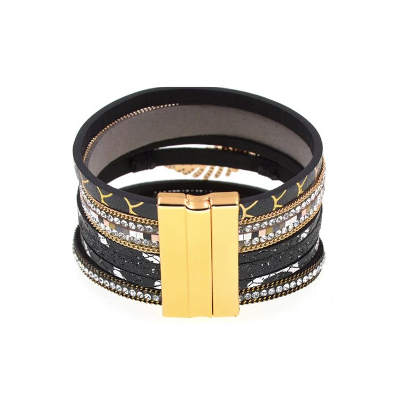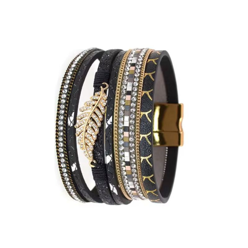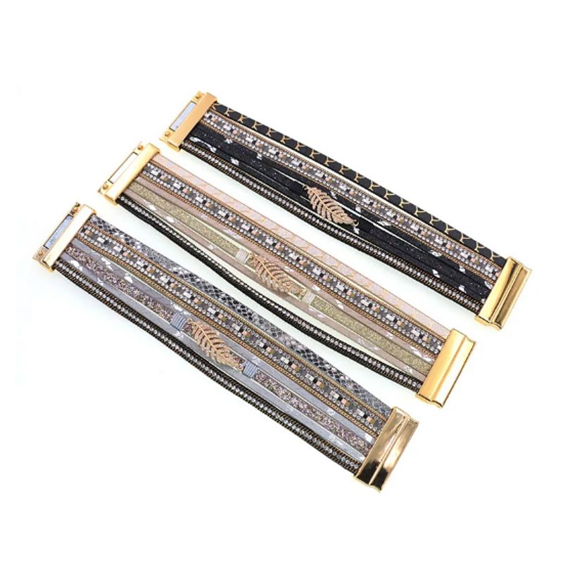 Multi-strand bracelet with a fern design , combining premium microfiber leather and a gold magnetic clasp. Every detail captures the eye and affirms your style.