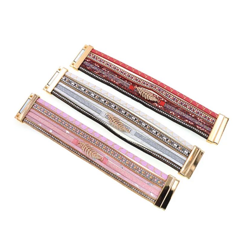 Multi-row Fern Bracelet in Microfiber Leather – Bohemian chic style