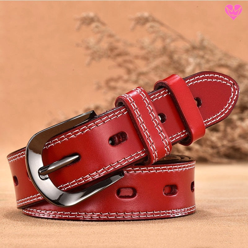 Quality women's belt in double stitched cowhide leather with metal pin buckle.