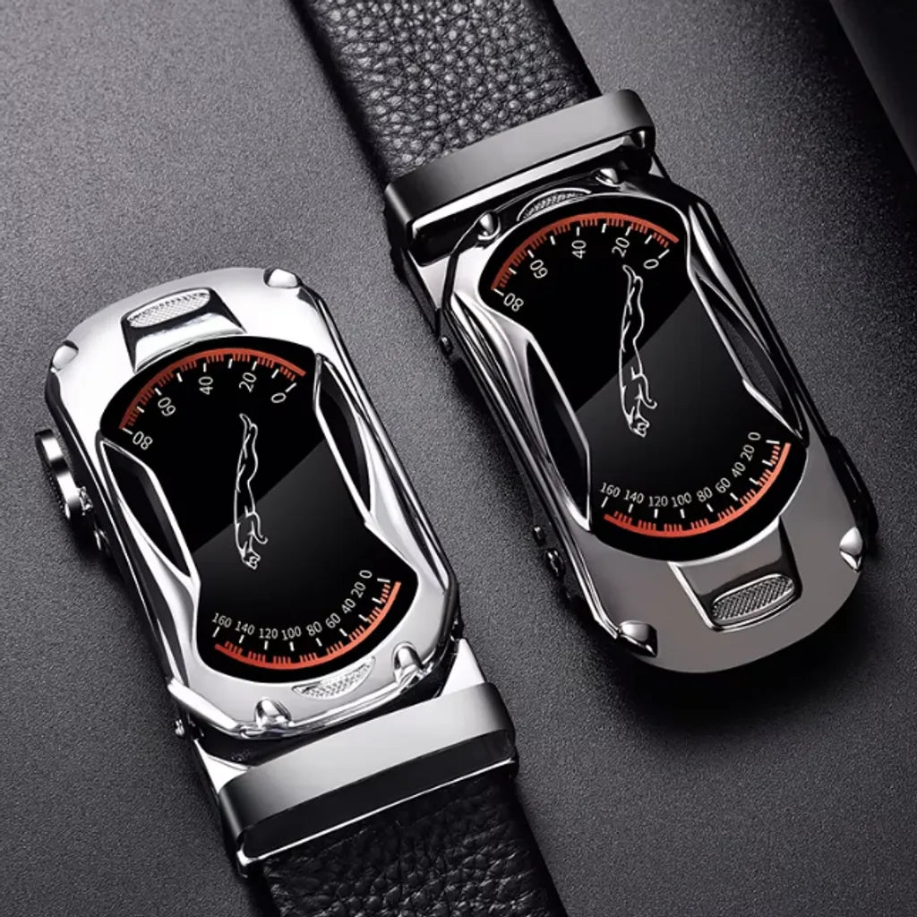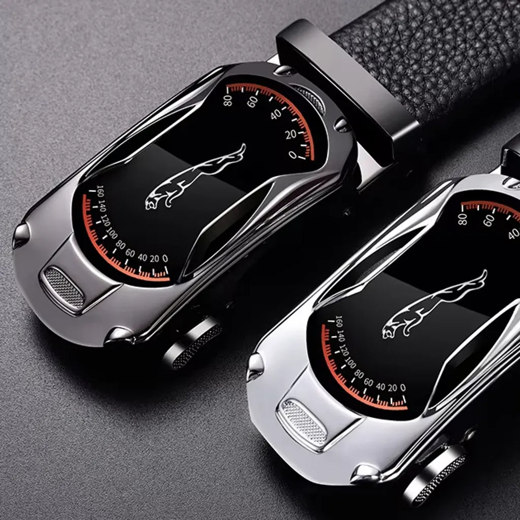 Jaguar Buckle Leather Belt, Automatic Lock for Men
