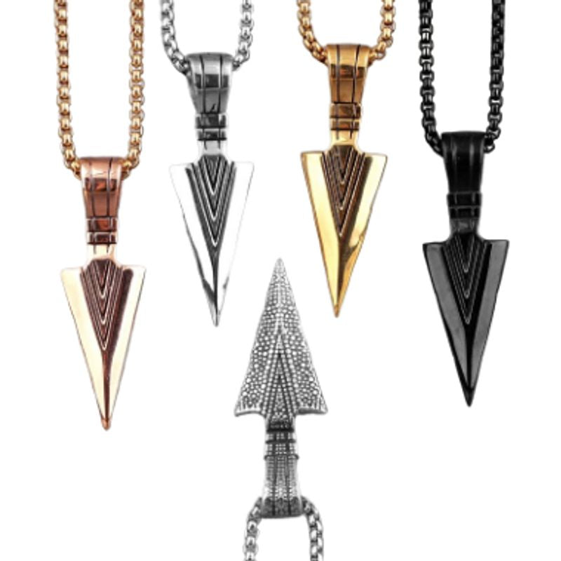 - This necklace embodies the perfection of stainless steel, ensuring strength and elegance . Its design, both refined and warlike, evokes a striking duality. The spearhead pendant, with its steel tip, symbolizes strength and uniqueness. , making this piece of jewelry more than just an accessory. Wear this piece with pride, revealing your distinctive and assertive style .