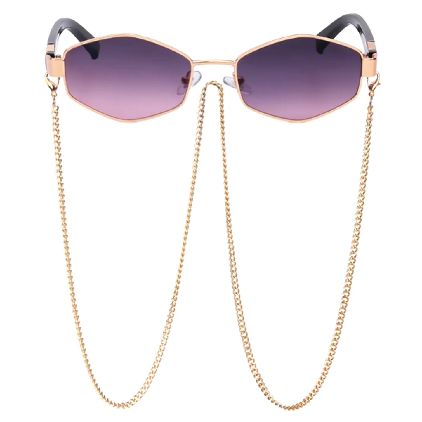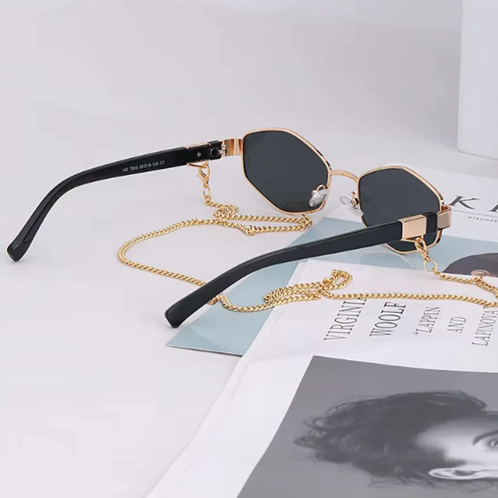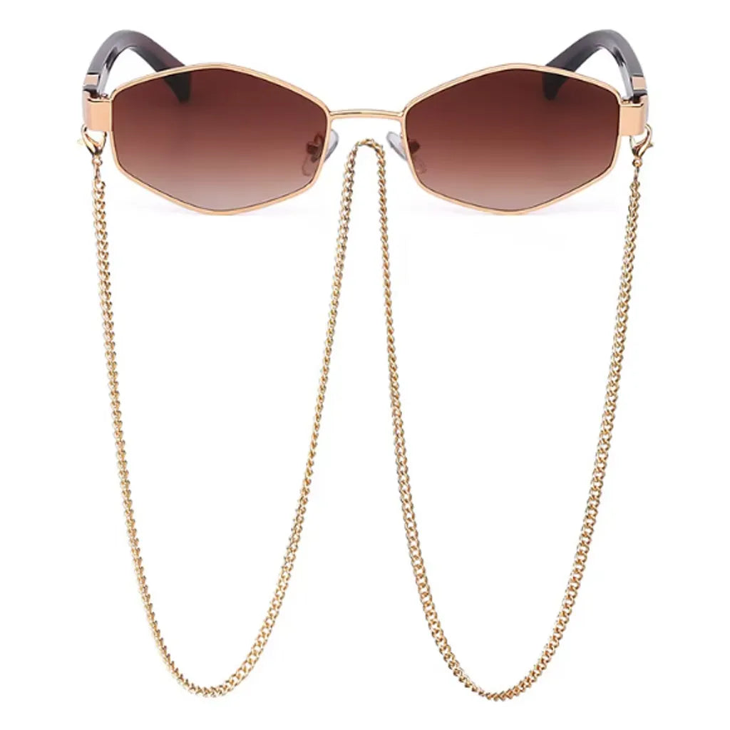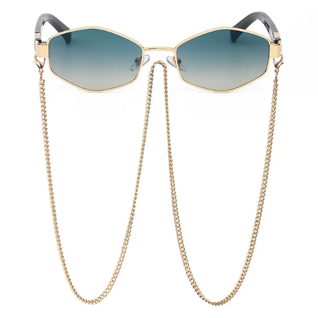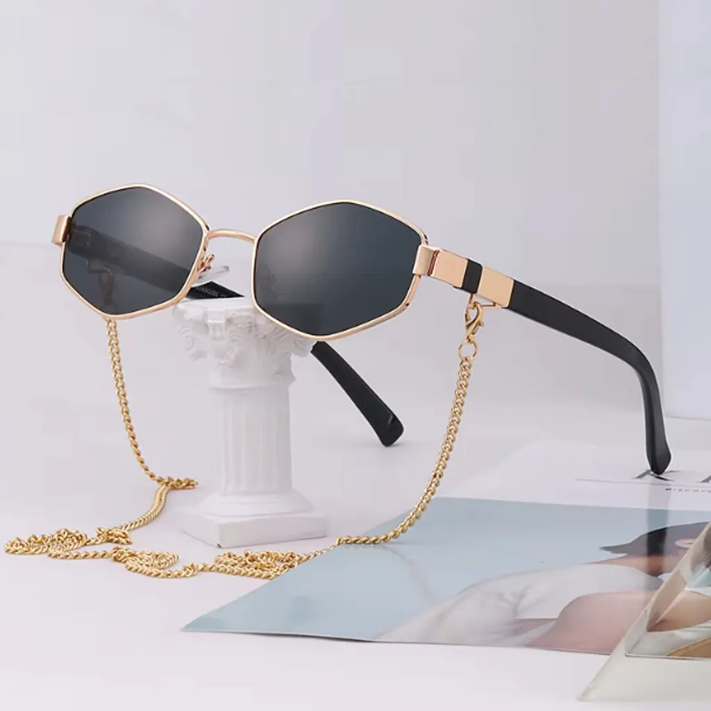 Women's Hexagonal Sunglasses - Chain and Anti-UV Lenses