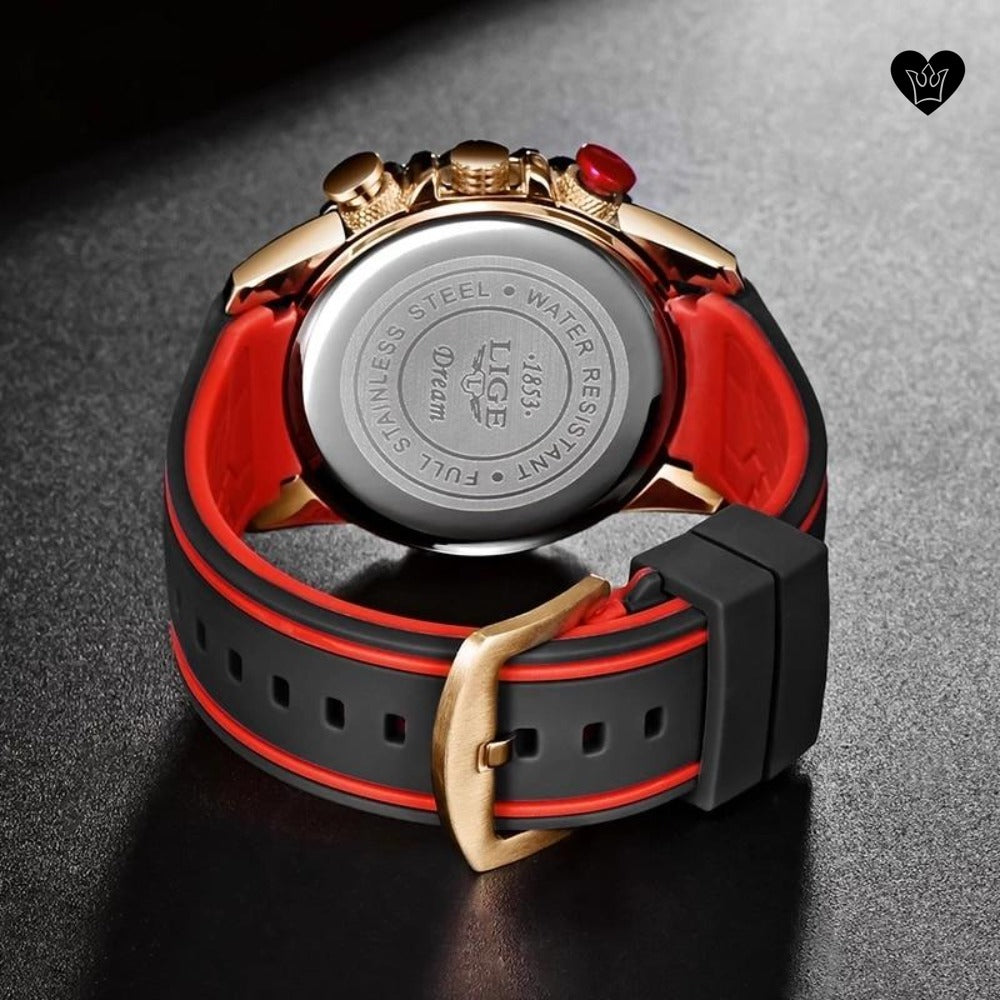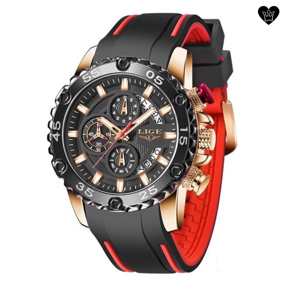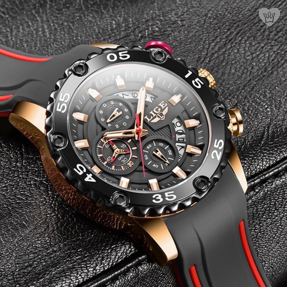 Large Black Dial Steel Watch with Silicone Strap - Men