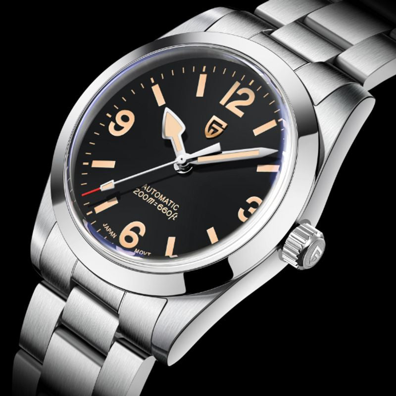 - With its screw-down crown for optimum water resistance and scratch-resistant sapphire crystal glass , this watch is both robust and functional. The secure 316L stainless steel folding clasp bracelet ensures a perfect and secure fit, no matter the adventure. All of these high-quality details and finishes come at an affordable price , making this watch a must-have for adventure lovers .