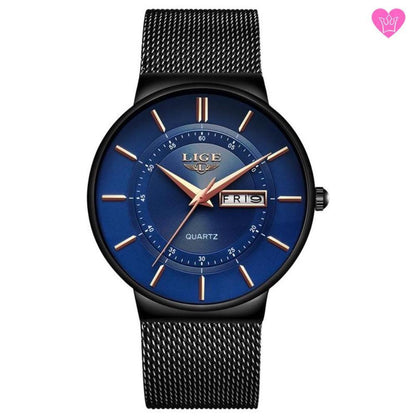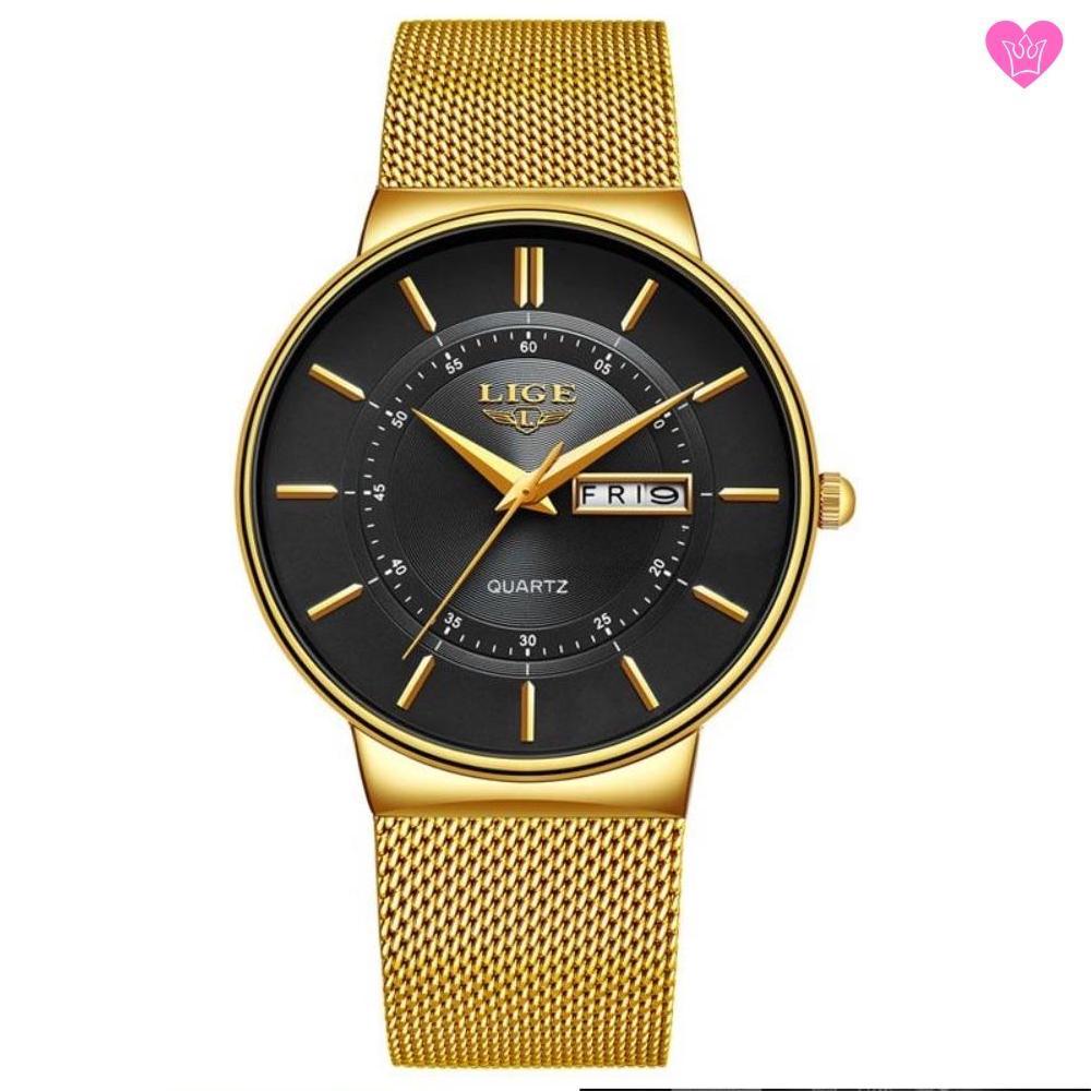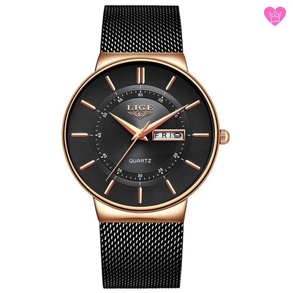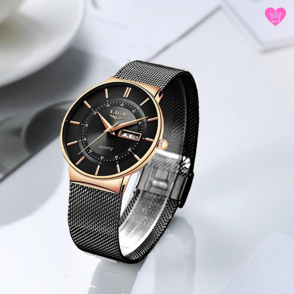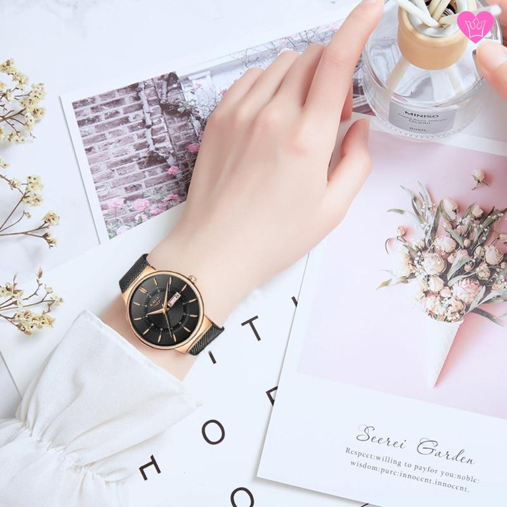 Top elegance, fashion, luxury watch in 316L stainless steel with quartz movement with thin Milanese mesh bracelet and adjustable hook buckle clasp.