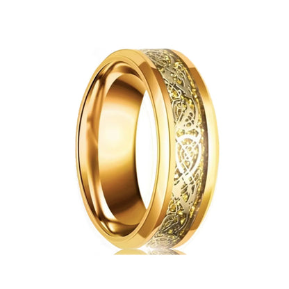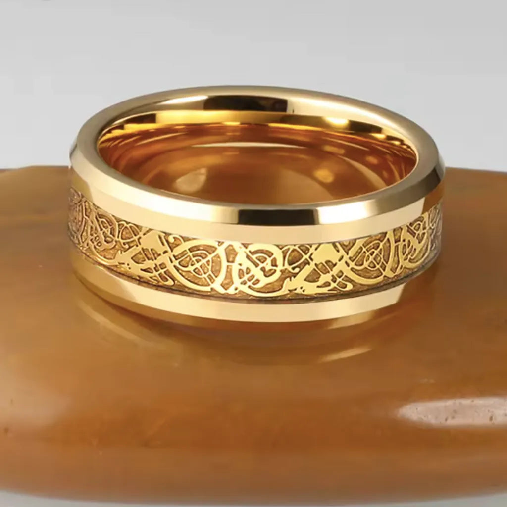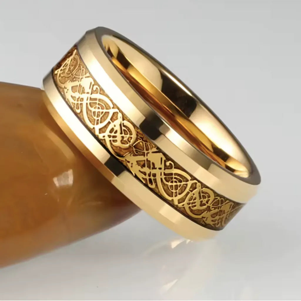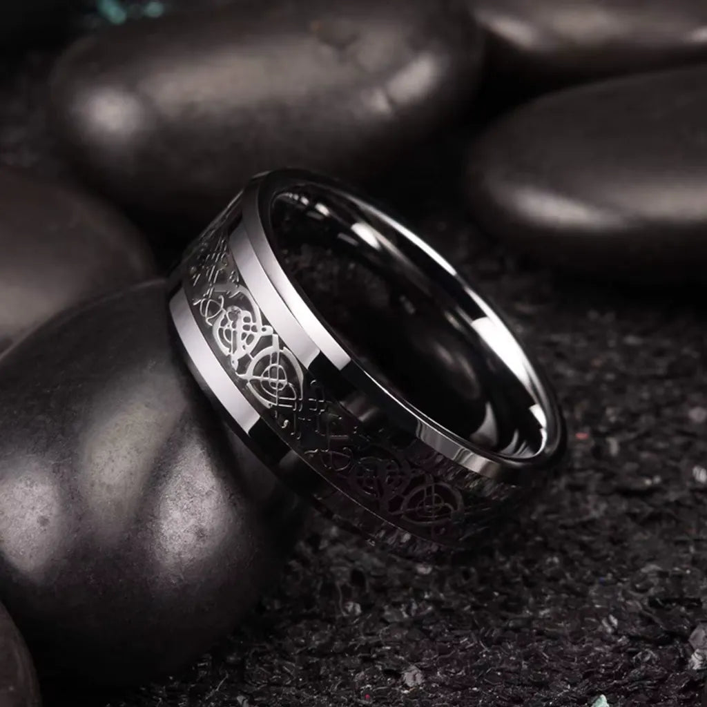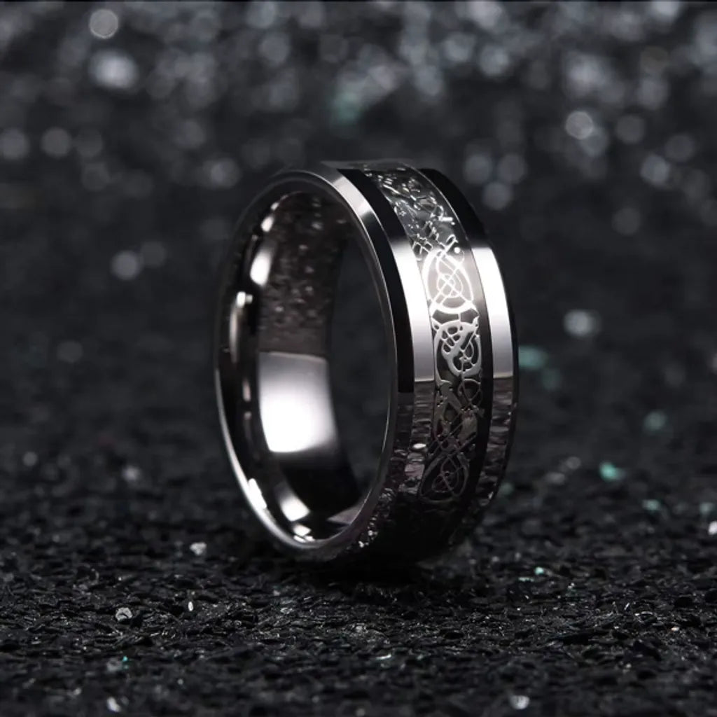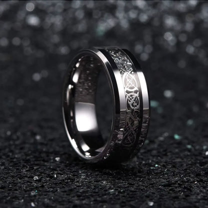 Anillo de dragón celta de acero inoxidable y fibra de carbono nórdica