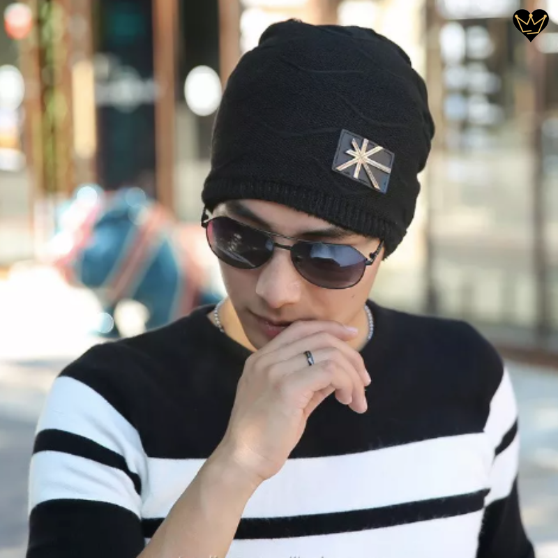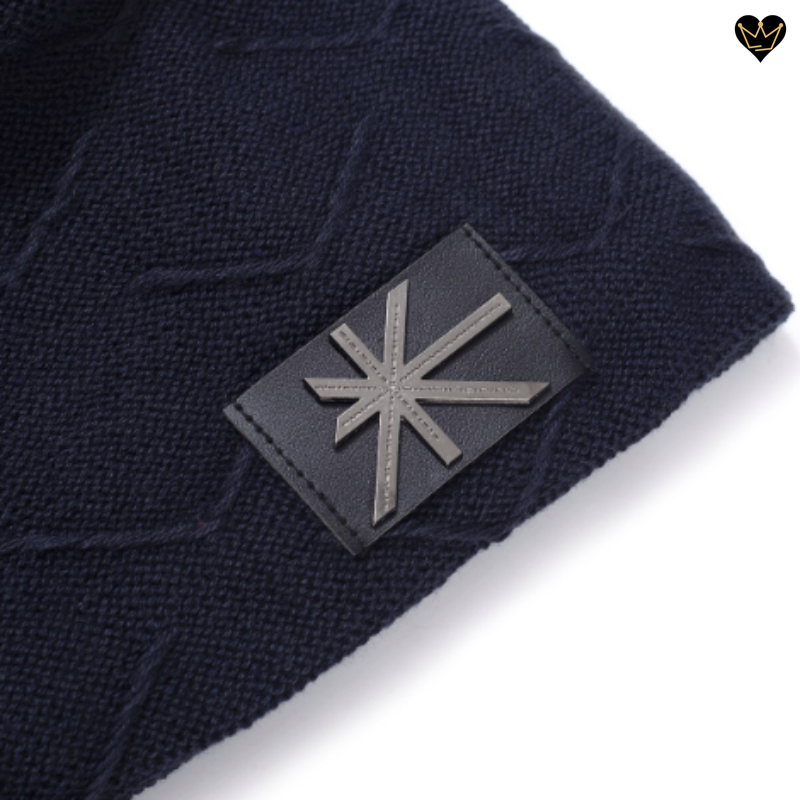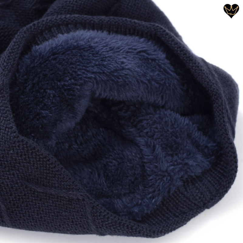 Bonnet Melrose pour homme tricoté en laine et coton avec doublure chaude - logo drapeau cousu de l'union Jack.