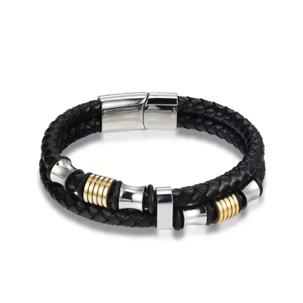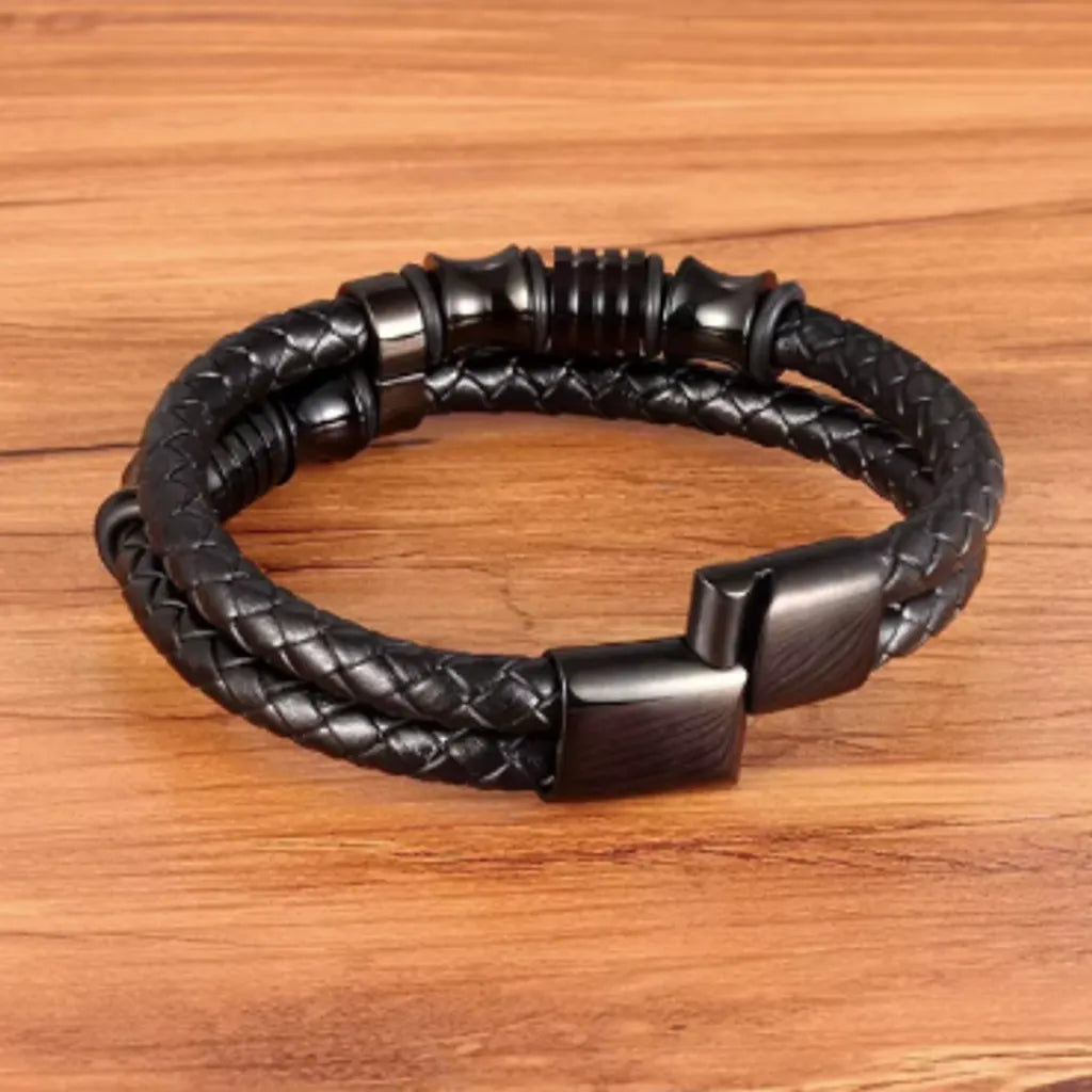 Matériau : Double lanière ronde en cuir noir tressé et Acier inoxydable