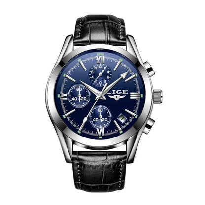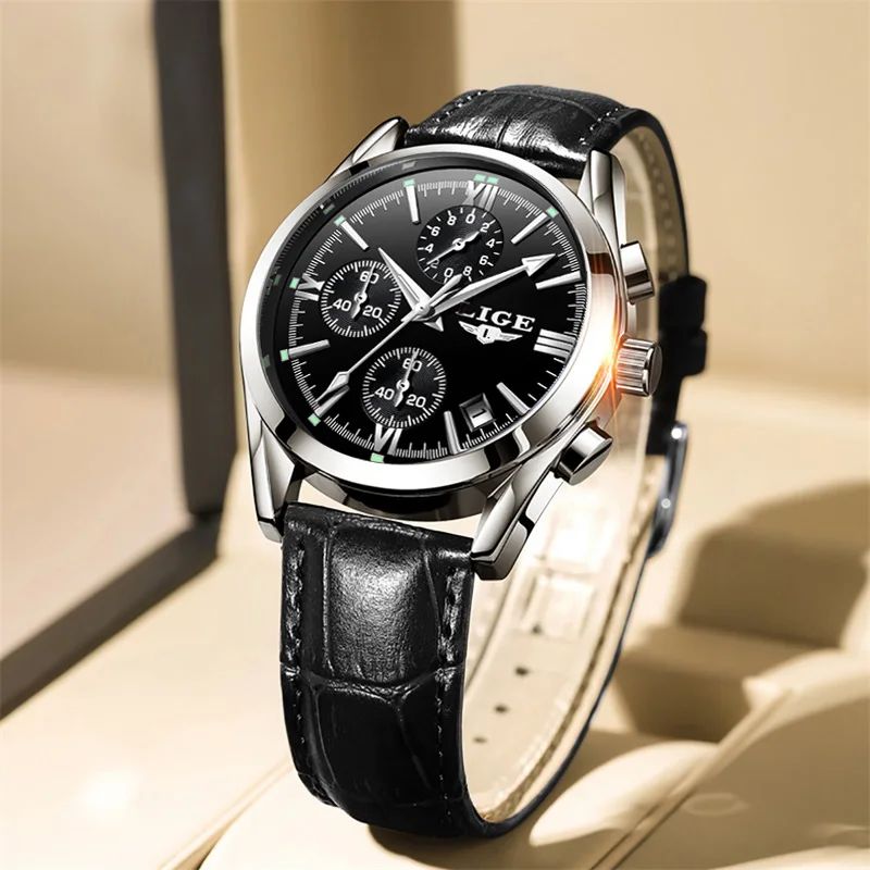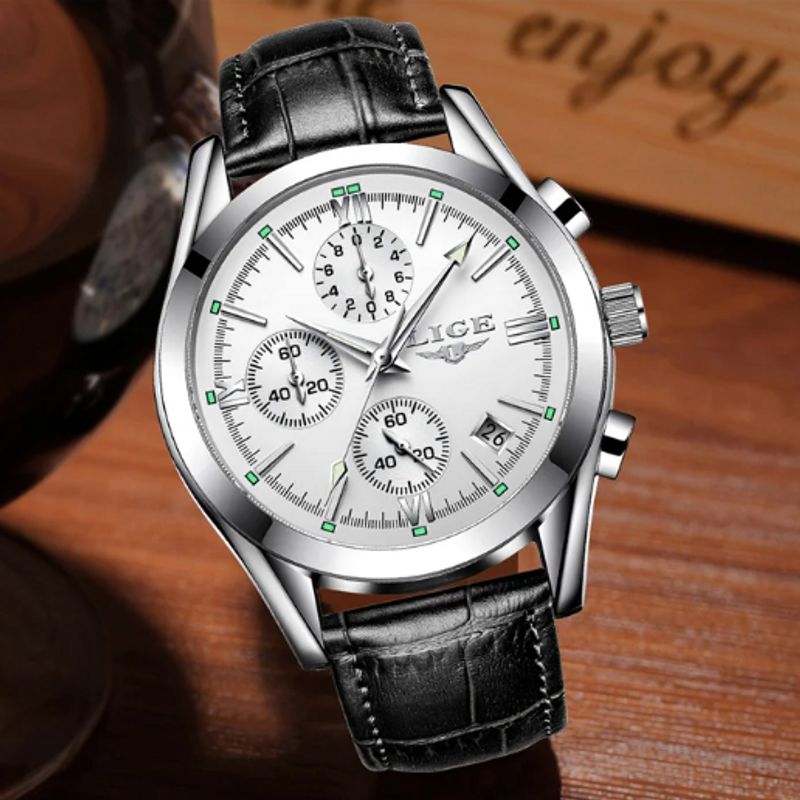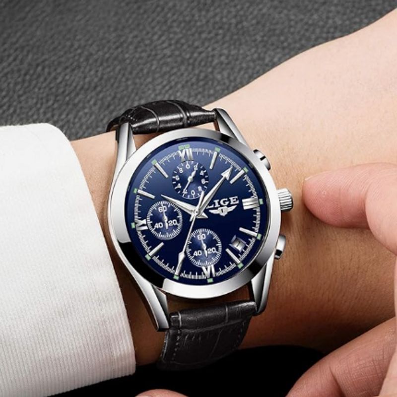 - La montre LIGE Chrono Style pour homme se distingue par son boîtier argenté et son bracelet noir, offrant un design contemporain et raffiné. Dotée d'un mouvement à quartz, cette montre propose un cadran en blanc, noir ou bleu. Un accessoire idéal pour ceux qui apprécient un style moderne et intemporel.