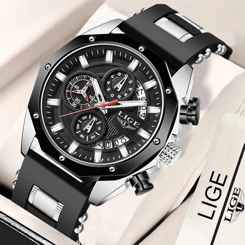 LIGE Ocean Master Black - Montre Homme Chronographe Sport