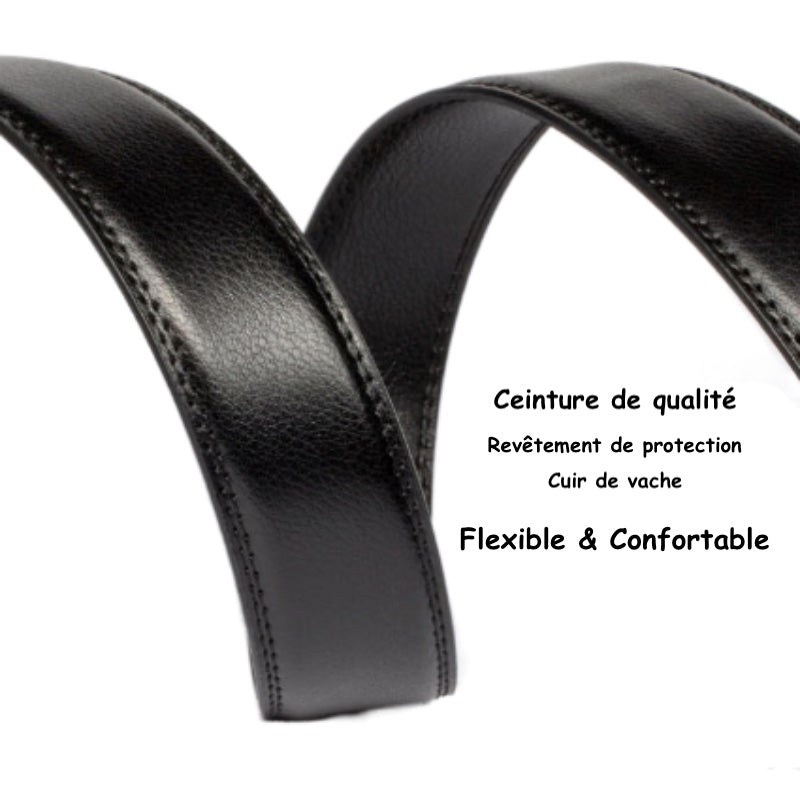 Ceinture Warren en Cuir Noir - Boucle à Verrouillage Automatique