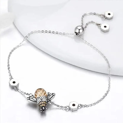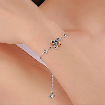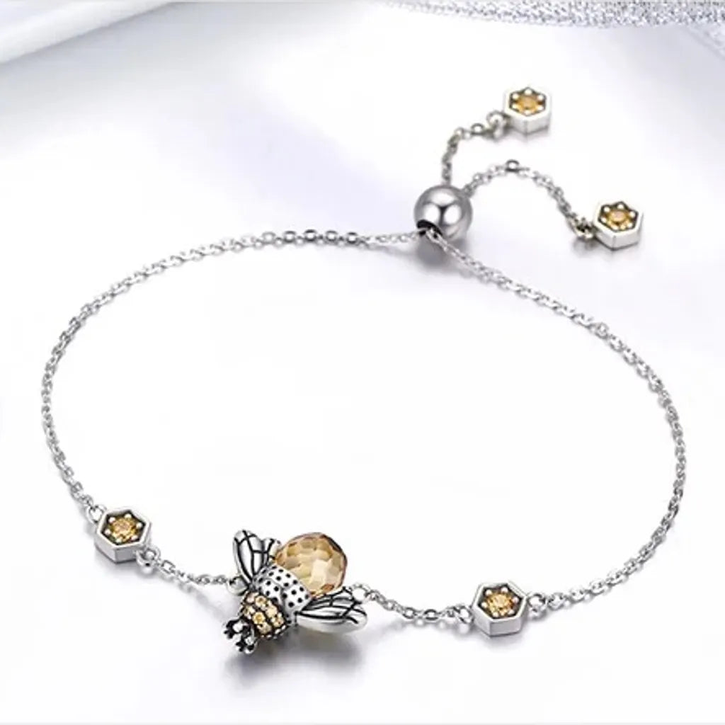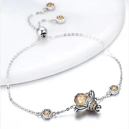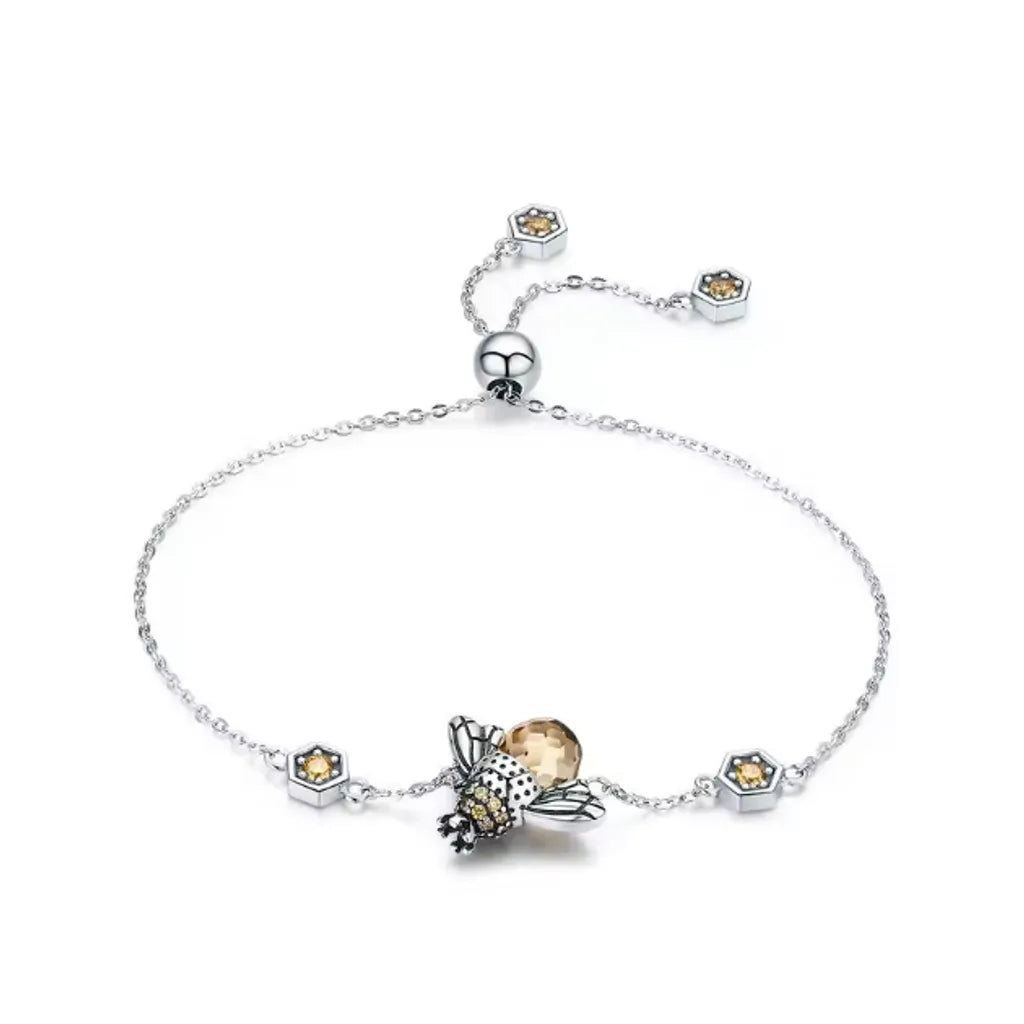 Bracelet Abeille Reine Argent 925 – Cristal Miel et Zircones