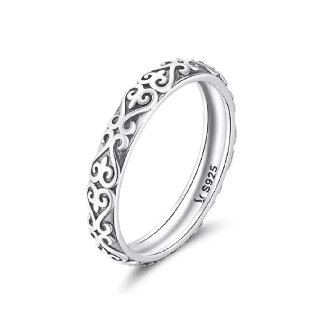 Sa finition miroir capte la lumière, tandis que son effet oxydé met en valeur des motifs discrets, comme gravés dans la mémoire. C’est un anneau de réflexion autant que de style, parfait à associer à d’autres bagues fines pour créer un jeu d’accumulation personnalisé.