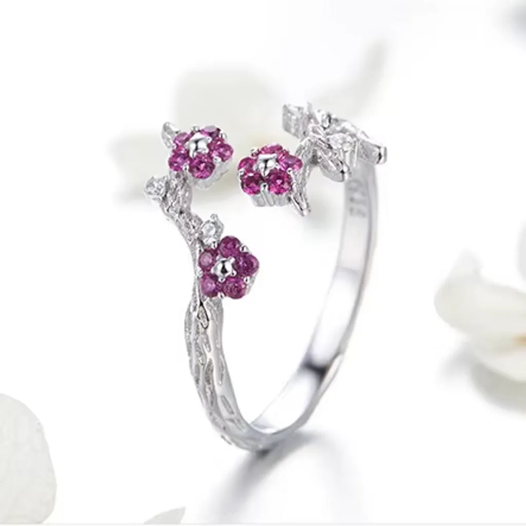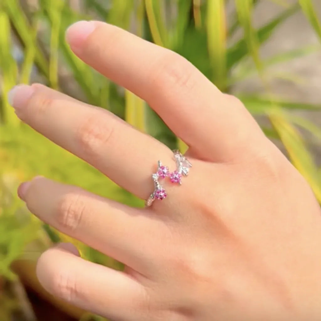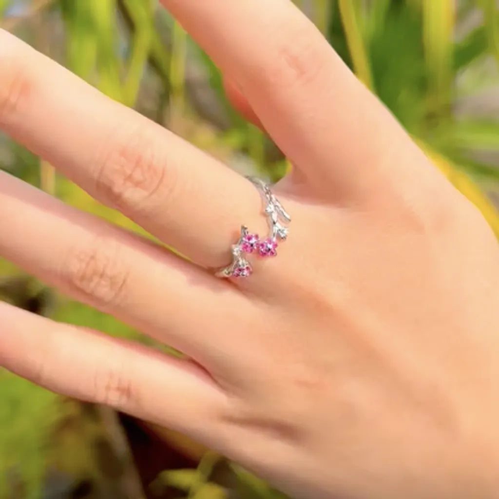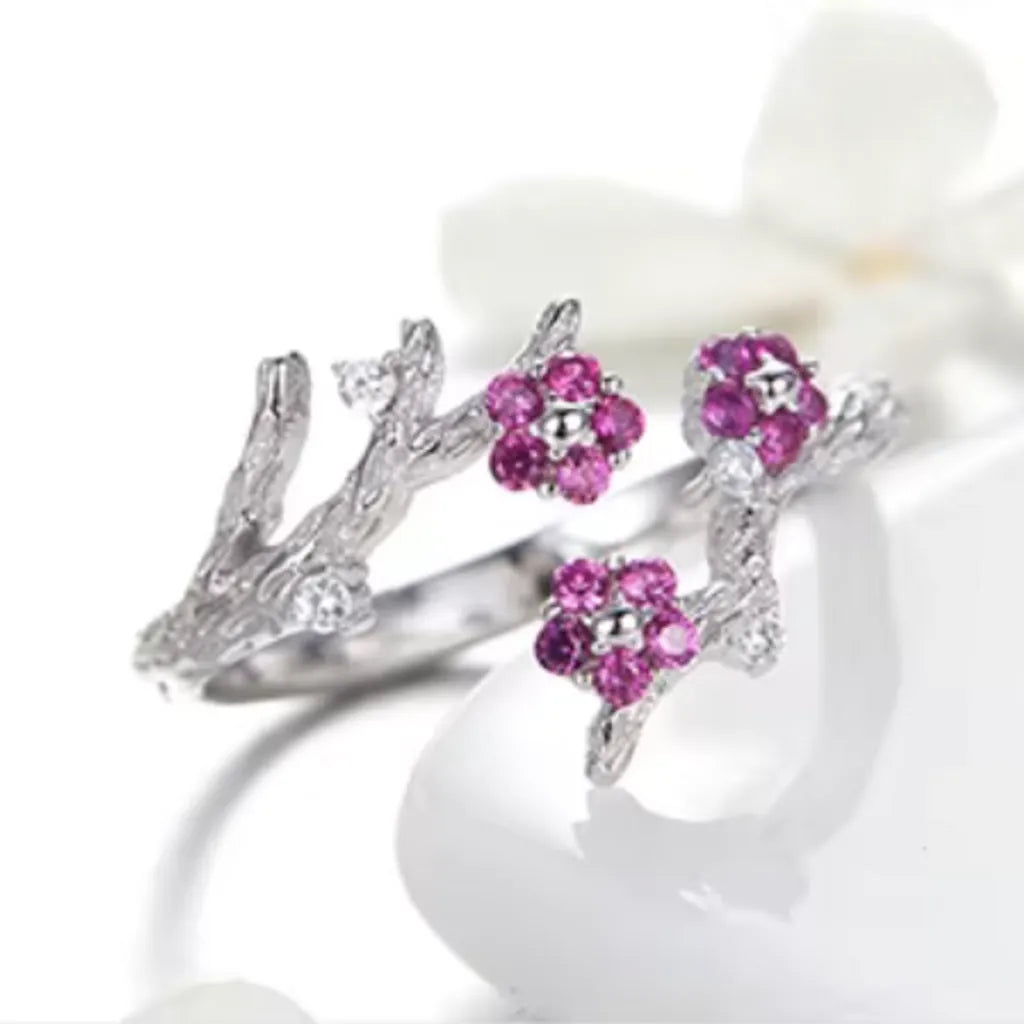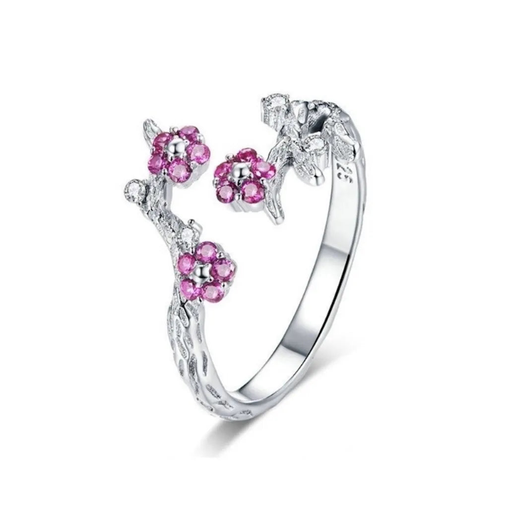 Bague Fleurs de Prunier Argent 925 – Zircones Roses